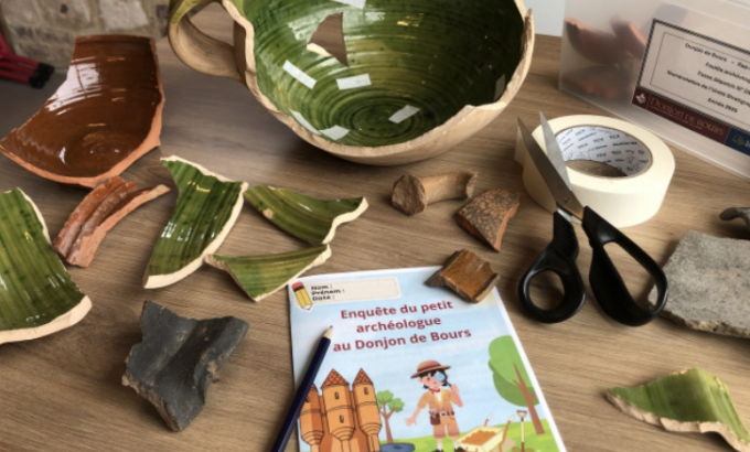 Vous rêvez de devenir archéologue ? Ce rêve est désormais à votre portée au Donjon de Bours. A l’occasion des fouilles archéologiques autour du site, venez vivre une enquête palpitante à la découverte du passé médiéval de cette maison forte : poterie, ossement, recollage, dessin… C’est à l’aide d’un petit carnet qui vous sera fourni, que vous pourrez comprendre le travail de recherche archéologique post- fouille.