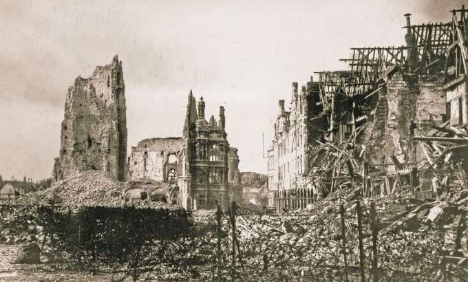 Le Beffroi et l’hôtel de ville d’Arras en ruines en 1917